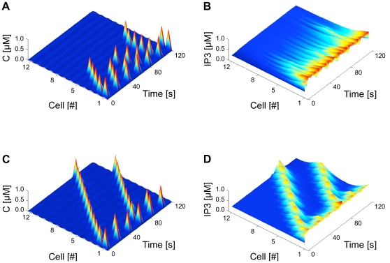 A new paradigm has recently emerged in brain science whereby communications between glial cells and neuron-glia interactions should be considered together with neurons and their networks to understand higher brain functions. In particular, astrocytes, the main type of glial cells in the cortex, have been shown to communicate with neurons and with each other. They are thought to form a gap-junction-coupled syncytium supporting cell-cell communication via propagating Ca(2+) waves. An identified mode of propagation is based on cytoplasm-to-cytoplasm transport of inositol trisphosphate (IP(3)) through gap junctions that locally trigger Ca(2+) pulses via IP(3)-dependent Ca(2+)-induced Ca(2+) release. It is, however, currently unknown whether this intracellular route is able to support the propagation of long-distance regenerative Ca(2+) waves or is restricted to short-distance signaling. Furthermore, the influence of the intracellular signaling dynamics on intercellular propagation remains to be understood. In this work, we propose a model of the gap-junctional route for intercellular Ca(2+) wave propagation in astrocytes. Our model yields two major predictions. First, we show that long-distance regenerative signaling requires nonlinear coupling in the gap junctions. Second, we show that even with nonlinear gap junctions, long-distance regenerative signaling is favored when the internal Ca(2+) dynamics implements frequency modulation-encoding oscillations with pulsating dynamics, while amplitude modulation-encoding dynamics tends to restrict the propagation range. As a result, spatially heterogeneous molecular properties and/or weak couplings are shown to give rise to rich spatiotemporal dynamics that support complex propagation behaviors. These results shed new light on the mechanisms implicated in the propagation of Ca(2+) waves across astrocytes and the precise conditions under which glial cells may participate in information processing in the brain.