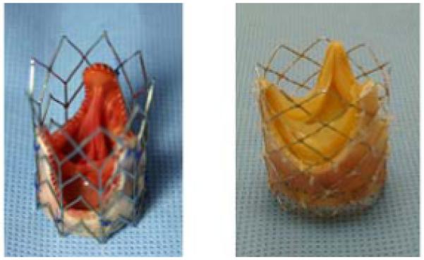 Methods: A total of 22 Yucatan pigs (45-57 kg) underwent tAVI. Commercially available stentless bioprostheses (21-25 mm) were mounted on either BE platinum-iridium stents or SE-nitinol stents. rtMRI guidance was employed as the intraoperative imaging. Markers on both types of stents were used to enhance visualization in rtMRI. Pigs were allowed to survive and had follow-up MRI scans and echocardiography at 1, 3, and 6 months postoperatively.
