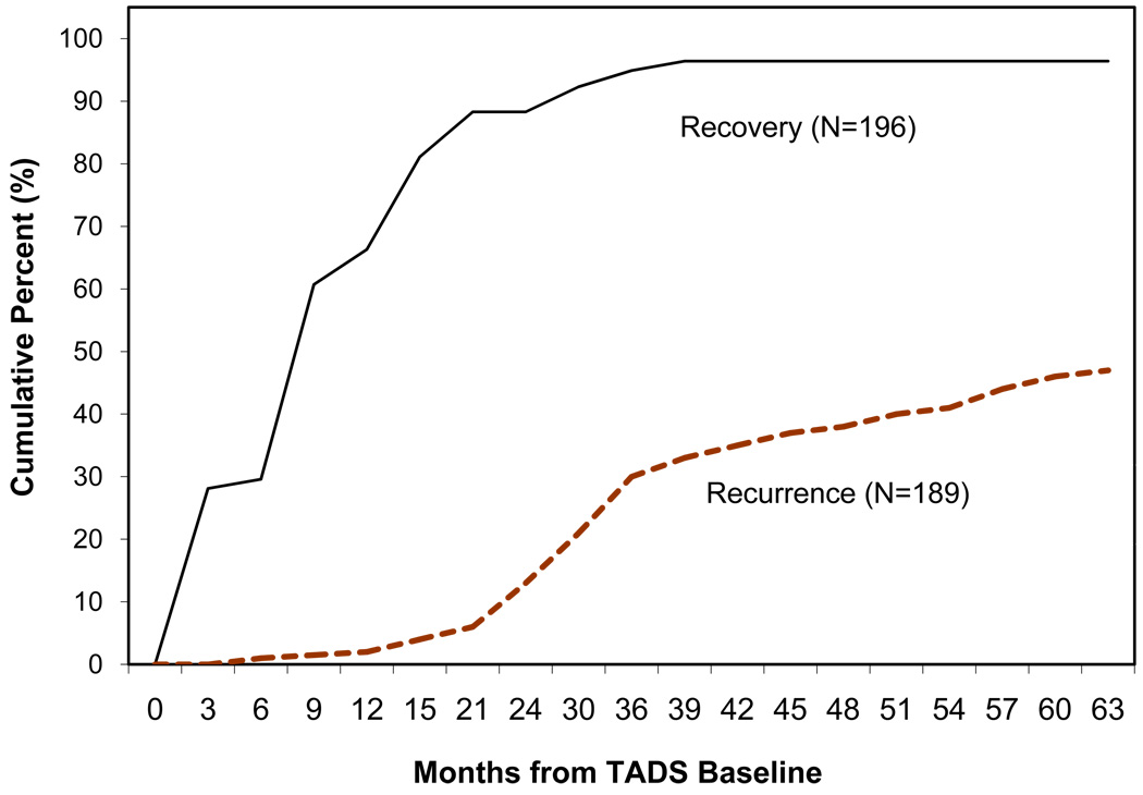 Objectives: To determine whether adolescents who responded to short-term treatments or who received the most efficacious short-term treatment would have lower recurrence rates, and to identify predictors of recovery and recurrence.