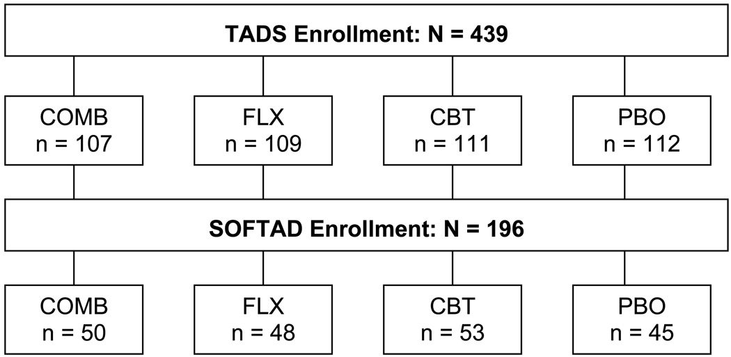 Participants: One hundred ninety-six adolescents (86 males and 110 females) randomized to 1 of 4 short-term interventions (fluoxetine hydrochloride treatment, cognitive behavioral therapy, their combination, or placebo) in the Treatment for Adolescents With Depression Study were followed up for 5 years after study entry (44.6% of the original Treatment for Adolescents With Depression Study sample).