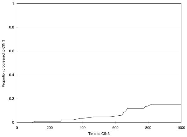Methods: Adolescents and women aged 13 to 24 years who were referred for abnormal cytology and were found to have CIN 2 on histology were evaluated at 4-month intervals. Risks for regression were defined as three consecutive negative cytology and histology visits, and progression to CIN 3 was estimated using Cox proportional hazards regression models.