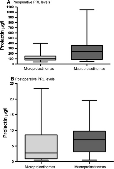 Despite the fact that consensus guidelines recommend long-term dopamine agonist (DA) therapy as a first-line approach to the treatment of small prolactinoma, some patients continue to prefer a primary surgical approach. Concerns over potential adverse effects of long-term medical therapy and/or the desire to become pregnant and avoid long-term medication are often mentioned as reasons to pursue surgical removal. In this retrospective study, 34 consecutive patients (30 female, 4 male) preferably underwent primary pituitary surgery without prior DA treatment for small prolactinomas (microprolactinoma 1-10 mm, macroprolactinoma 11-20 mm) at the Department of Neurosurgery, University of Bern, Switzerland. At the time of diagnosis, 31 of 34 patients (91%) presented with symptoms. Patients with microprolactinomas had significantly lower preoperative prolactin (PRL) levels compared to patients with macroprolactinomas (median 143 μg/l vs. 340 μg/l). Ninety percent of symptomatic patients experienced significant improvement of their signs and symptoms upon surgery. The postoperative PRL levels (median 3.45 μg/l) returned to normal in 94% of patients with small prolactinomas. There was no mortality and no major morbidities. One patient suffered from hypogonadotropic hypogonadism after surgery despite postoperative normal PRL levels. Long-term remission was achieved in 22 of 24 patients (91%) with microprolactinomas, and in 8 of 10 patients (80%) with macroprolactinomas after a median follow-up period of 33.5 months. Patients with small prolactinomas can safely consider pituitary surgery in a specialized centre with good chance of long-term remission as an alternative to long-term DA therapy.