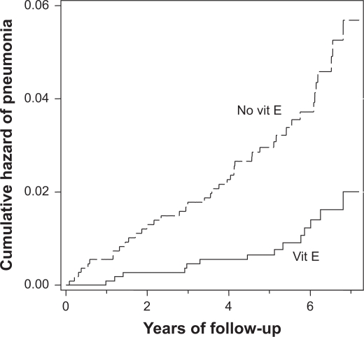 Conclusion: Subgroup analysis of large trials should be encouraged, though caution is needed in the interpretation of findings. The role of vitamin E in susceptibility to pneumonia in physically active nonsmokers warrants further study.