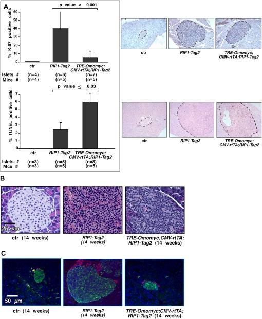 The ubiquitous deregulation of Myc in human cancers makes it an intriguing therapeutic target, a notion supported by recent studies in Ras-driven lung tumors showing that inhibiting endogenous Myc triggers ubiquitous tumor regression. However, neither the therapeutic mechanism nor the applicability of Myc inhibition to other tumor types driven by other oncogenic mechanisms is established. Here, we show that inhibition of endogenous Myc also triggers ubiquitous regression of tumors in a simian virus 40 (SV40)-driven pancreatic islet tumor model. Such regression is presaged by collapse of the tumor microenvironment and involution of tumor vasculature. Hence, in addition to its diverse intracellular roles, endogenous Myc serves an essential and nonredundant role in coupling diverse intracellular oncogenic pathways to the tumor microenvironment, further bolstering its credentials as a pharmacological target.