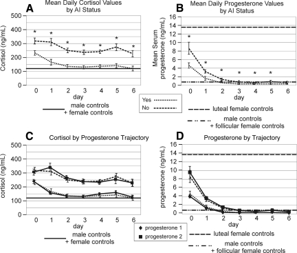 Experimental traumatic brain injury (TBI) studies report the neuroprotective effects of female sex steroids on multiple mechanisms of injury, with the clinical assumption that women have hormonally mediated neuroprotection because of the endogenous presence of these hormones. Other literature indicates that testosterone may exacerbate injury. Further, stress hormone abnormalities that accompany critical illness may both amplify or blunt sex steroid levels. To better understand the role of sex steroid exposure in mediating TBI, we 1) characterized temporal profiles of serum gonadal and stress hormones in a population with severe TBI during the acute phases of their injury; and 2) used a biological systems approach to evaluate these hormones as biomarkers predicting global outcome. The study population was 117 adults (28 women; 89 men) with severe TBI. Serum samples (n=536) were collected for 7 days post-TBI for cortisol, progesterone, testosterone, estradiol, luteinizing hormone (LH), and follicle-stimulating hormone (FSH). Hormone data were linked with clinical data, including acute care mortality and Glasgow Outcome Scale (GOS) scores at 6 months. Hormone levels after TBI were compared to those in healthy controls (n=14). Group based trajectory analysis (TRAJ) was used to develop temporal hormone profiles that delineate distinct subpopulations in the cohort. Structural equations models were used to determine inter-relationships between hormones and outcomes within a multivariate model. Compared to controls, acute serum hormone levels were significantly altered after severe TBI. Changes in the post-TBI adrenal response and peripheral aromatization influenced hormone TRAJ profiles and contributed to the abnormalities, including increased estradiol in men and increased testosterone in women. In addition to older age and greater injury severity, increased estradiol and testosterone levels over time were associated with increased mortality and worse global outcome for both men and women. These findings represent a paradigm shift when thinking about the role of sex steroids in neuroprotection clinically after TBI.