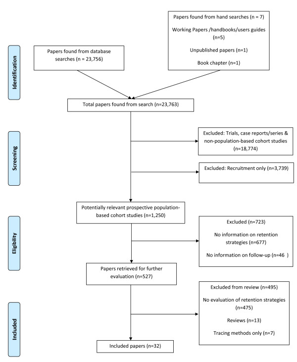 Methods: Systematic review of the literature to identify prospective population-based cohort studies with health outcomes in which retention strategies had been evaluated.