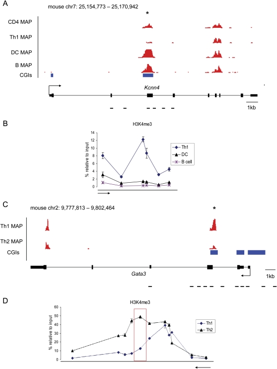 Human and mouse genomes contain a similar number of CpG islands (CGIs), which are discrete CpG-rich DNA sequences associated with transcription start sites. In both species, ∼50% of all CGIs are remote from annotated promoters but, nevertheless, often have promoter-like features. To determine the role of CGI methylation in cell differentiation, we analyzed DNA methylation at a comprehensive CGI set in cells of the mouse hematopoietic lineage. Using a method that potentially detects ∼33% of genomic CpGs in the methylated state, we found that large differences in gene expression were accompanied by surprisingly few DNA methylation changes. There were, however, many DNA methylation differences between hematopoietic cells and a distantly related tissue, brain. Altered DNA methylation in the immune system occurred predominantly at CGIs within gene bodies, which have the properties of cell type-restricted promoters, but infrequently at annotated gene promoters or CGI flanking sequences (CGI "shores"). Unexpectedly, elevated intragenic CGI methylation correlated with silencing of the associated gene. Differentially methylated intragenic CGIs tended to lack H3K4me3 and associate with a transcriptionally repressive environment regardless of methylation state. Our results indicate that DNA methylation changes play a relatively minor role in the late stages of differentiation and suggest that intragenic CGIs represent regulatory sites of differential gene expression during the early stages of lineage specification.