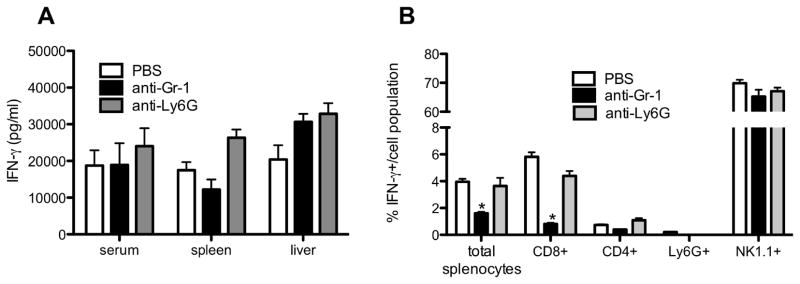 Previous studies have suggested that neutrophils are required for resistance during infection with multiple pathogenic microorganisms. However, the depleting antibody used in those studies binds to both Ly6G and Ly6C (anti-Gr-1; clone RB6-8C5). This antibody has been shown to deplete not only neutrophils but also monocytes and a subset of CD8(+) T cells. Recently, an antibody against Ly6G, which specifically depletes neutrophils, was characterized. In the present study, neutrophils are depleted using the antibody against Ly6G during infection with the intracellular bacterium Listeria monocytogenes (LM). Our data show that neutrophil-depleted mice are much less susceptible to infection than mice depleted with anti-Gr-1. Although neutrophils are required for clearance of LM, their importance is more pronounced in the liver and during a high-dose bacterial challenge. Furthermore, we demonstrate that the protection mediated by neutrophils is due to the production of TNF-α, but not IFN-γ. Additionally, neutrophils are not required for the recruitment of monocytes or the generation of adaptive T-cell responses during LM infection. This study highlights the importance of neutrophils during LM infection, and indicate that depletion of neutrophils is less detrimental to the host than depletion of all Gr-1-expressing cell populations.