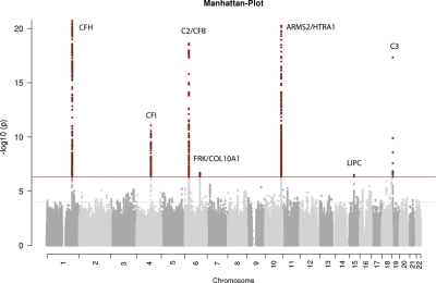- Hageman G.S., Anderson D.H., Johnson L.V., Hancox L.S., Taiber A.J., Hardisty L.I., Hageman J.L., Stockman H.A., Borchardt J.D., Gehrs K.M., et al. A common haplotype in the complement regulatory gene factor H (HF1/CFH) predisposes individuals to age-related macular degeneration. Proc. Natl Acad. Sci. USA. 2005;102:7227–7232. - PMC - PubMed