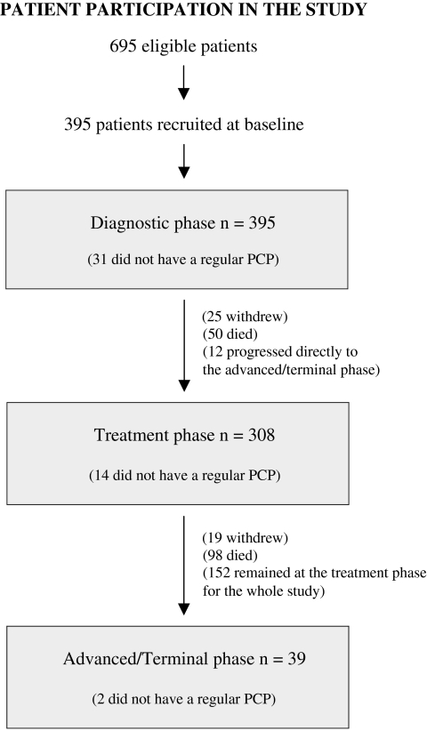 Objective: To compare lung cancer patient, PCP and specialist expectations regarding PCP involvement in coordination of care, emotional support, information transmission and symptom relief at the different phases of cancer.