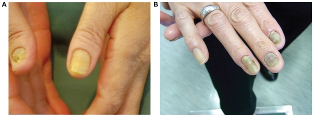 - Maldonado F, Tazelaar HD, Wang CW, Ryu JH. Yellow nail syndrome: analysis of 41 consecutive patients. Chest. 2008;134(6):375–81. - PubMed