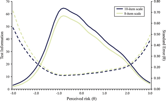 Past studies have used various methods to assess perceived risk of HIV infection; however, few have included multiple items covering different dimensions of risk perception or have examined the characteristics of individual items. This study describes the use of Item Response Theory (IRT) to develop a short measure of perceived risk of HIV infection scale (PRHS). An item pool was administered by trained interviewers to 771 participants. Participants also completed the risk behavior assessment (RBA) which includes items measuring risky sexual behaviors, and 652 participants completed HIV testing. The final measure consisted of 8 items, including items assessing likelihood estimates, intuitive judgments and salience of risk. Higher scores on the PRHS were positively associated with a greater number of sex partners, episodes of unprotected sex and having sex while high. Participants who tested positive for HIV reported higher perceived risk. The PRHS demonstrated good reliability and concurrent criterion-related validity. Compared to single item measures of risk perception, the PRHS is more robust by examining multiple dimensions of perceived risk. Possible uses of the measure and directions for future research are discussed.