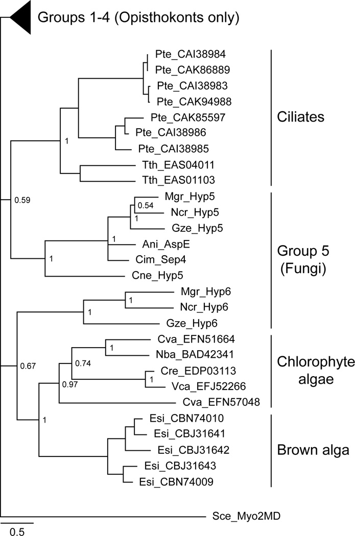 Until recently, it had appeared that the septin family of proteins was restricted to the opisthokont eukaryotes (the fungi and animals and their close relatives the microsporidia and choanoflagellates). It has now become apparent that septins are also present in several other widely divergent eukaryotic lineages (chlorophyte algae, brown algae, and ciliates). This distribution and the details of the non-opisthokont septin sequences appear to require major revisions to hypotheses about the origins and early evolution of the septins.