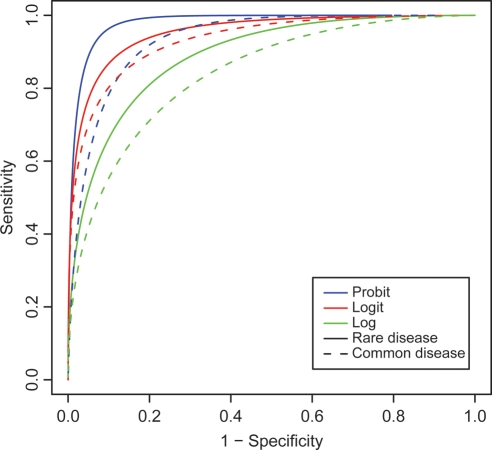 , adjusted for the number of stages in the study (three stage studies have a smaller fraction of samples with GWAS data, and thus have lower power). Risk prediction is performed using logistic regression evaluated on data sets simulated from allele frequencies and odds ratios taken from replication data. PD: Parkinson's disease (45,46), AMD, age-related macular degeneration (47); T1D, type 1 diabetes (11); T2D, type 2 diabetes (48); UC, ulcerative colitis (49); CD, Crohn's disease (18,50); RA, rheumatoid arthritis (51); CAD, coronary artery disease (52); BRCA, breast cancer (53); LOAD, late-onset Alzheimer's disease (54,55); MS, multiple sclerosis (56); MDD, major depressive disorder (57); BP, bipolar disorder (58); SLE, systemic lupus erythematosus (59); SZ, schizophrenia (29); CRCA, colorectal cancer (60); PRCA, prostate cancer (61); OVCA, ovarian cancer (62,63).