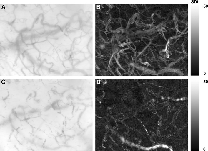 The purpose of this study was to develop a rapid and fully automatic method for the assessment of microvascular density and perfusion in sidestream dark field (SDF) images. We modified algorithms previously developed by our group for microvascular density assessment and introduced a new method for microvascular perfusion assessment. To validate the new algorithm for microvascular density assessment, we reanalyzed a selection of SDF video clips (n = 325) from a study in intensive care patients and compared the results to (semi-)manually found microvascular densities. The method for microvascular perfusion assessment (temporal SDF image contrast analysis, tSICA) was tested in several video simulations and in one high quality SDF video clip where the microcirculation was imaged before and during circulatory arrest in a cardiac surgery patient. We found that the new method for microvascular density assessment was very rapid (<30 s/clip) and correlated excellently with (semi-)manually measured microvascular density. The new method for microvascular perfusion assessment (tSICA) was shown to be limited by high cell densities and velocities, which severely impedes the applicability of this method in real SDF images. Hence, here we present a validated method for rapid and fully automatic assessment of microvascular density in SDF images. The new method was shown to be much faster than the conventional (semi-)manual method. Due to current SDF imaging hardware limitations, we were not able to automatically detect microvascular perfusion.