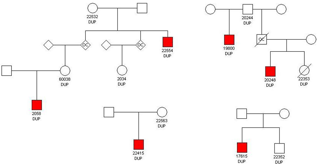 Results: Copy number variants thought to be associated with risk for schizophrenia and related disorders also occur in affected individuals in Palau, specifically 15q11.2 and 1q21.1 deletions, partial duplication of IL1RAPL1 (Xp21.3), and chromosome X duplications (Klinefelter's syndrome). Partial duplication within A2BP1 appears to convey an eightfold increased risk in male subjects (95% confidence interval, .8-84.4) but not female subjects (odds ratio = .4, 95% confidence interval, .03-4.9). Affected-only linkage analysis using this variant yields a logarithm of the odds score of 3.5.