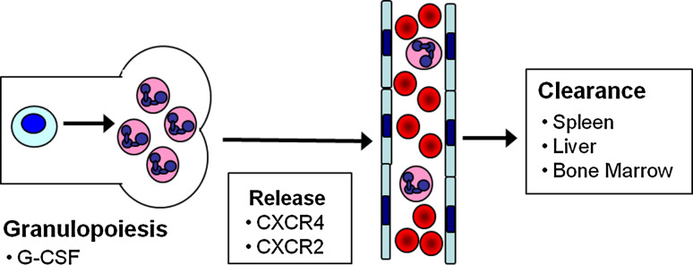 Neutrophils are an essential component of the innate immune response and a major contributor to inflammation. Consequently, neutrophil homeostasis in the blood is highly regulated. Neutrophil number in the blood is determined by the balance between neutrophil production in the bone marrow and release from the bone marrow to blood with neutrophil clearance from the circulation. This review will focus on mechanisms regulating neutrophil release from the bone marrow. In particular, recent data demonstrating a central role for the chemokines CXCL12 and CXCL2 in regulating neutrophil egress from the bone marrow will be discussed.