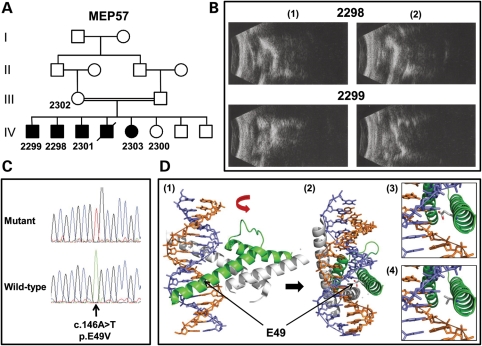 The atonal homolog 7 (ATOH7) gene encodes a transcription factor involved in determining the fate of retinal progenitor cells and is particularly required for optic nerve and ganglion cell development. Using a combination of autozygosity mapping and next generation sequencing, we have identified homozygous mutations in this gene, p.E49V and p.P18RfsX69, in two consanguineous families diagnosed with multiple ocular developmental defects, including severe vitreoretinal dysplasia, optic nerve hypoplasia, persistent fetal vasculature, microphthalmia, congenital cataracts, microcornea, corneal opacity and nystagmus. Most of these clinical features overlap with defects in the Norrin/β-catenin signalling pathway that is characterized by dysgenesis of the retinal and hyaloid vasculature. Our findings document Mendelian mutations within ATOH7 and imply a role for this molecule in the development of structures at the front as well as the back of the eye. This work also provides further insights into the function of ATOH7, especially its importance in retinal vascular development and hyaloid regression.