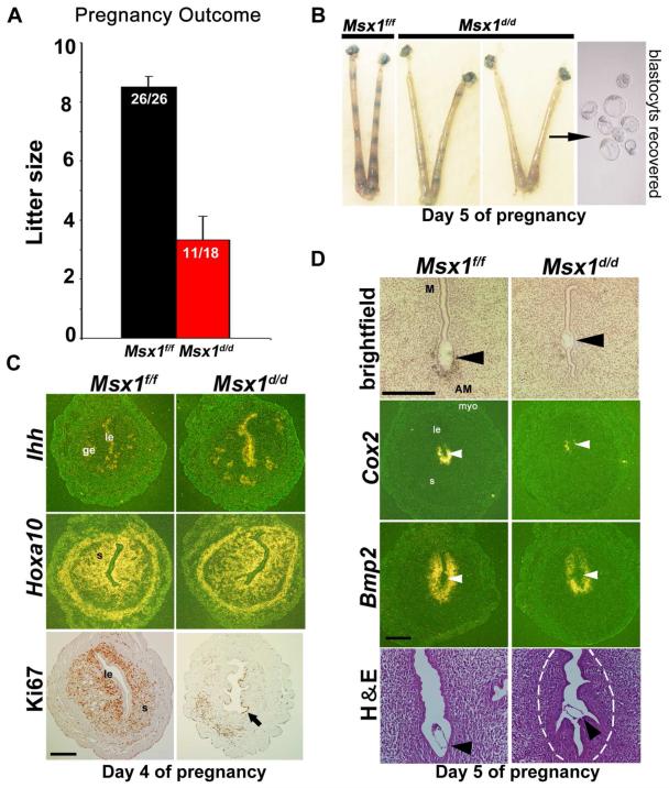 Conditional deletion of Msx homeobox genes in the uterus inhibits blastocyst implantation by altering uterine receptivity