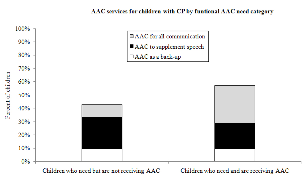 PURPOSE: This study describes the alignment between the need for AAC among a group of young children with cerebral palsy (CP) who had clinical communication disorders and the speech-language goals/objectives being targeted in the IEPs of these children. METHOD: 22 children with CP who had clinical communication disorders were classified into groups according to their need for AAC based on prospective assessment data. Individualized Education Plans (IEPs) in place at the time of the assessment were analyzed to characterize the type of speech-language goals/objectives being addressed for each child. RESULTS: 95% of children with CP in this sample could benefit from some form of AAC. Among these, 62% had at least some functional speaking ability. Among all children who could benefit from AAC, 57% had AAC-focused speech-language goals/objectives in the IEP. Children who had any functional speaking ability were less likely to have AAC-focused speech language goals/objectives than children who were unable to speak. CONCLUSIONS: Results suggest that a majority of young children with CP and communication disorders would benefit from some form of AAC, however these children seemed to be under-served with regard to AAC interventions, particularly those who had any functional speaking ability. Additional pre-service and in-service training for speech language pathologists and other professional is necessary to ensure that children with CP receive the AAC-focused speech-language services they need.