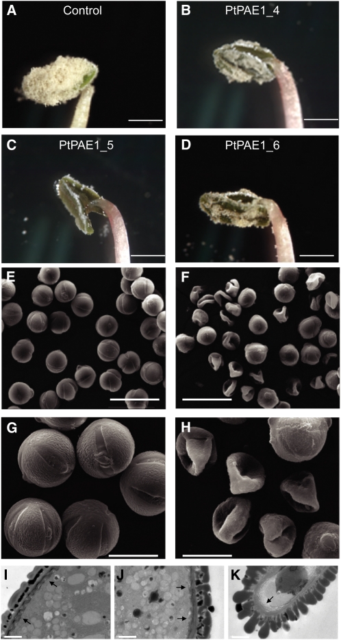 Pectin is a major component of the primary cell wall of higher plants. Some galacturonyl residues in the backbone of pectinaceous polysaccharides are often O-acetylated at the C-2 or C-3 position, and the resulting acetylesters change dynamically during the growth and development of plants. The processes involve both enzymatic acetylation and deacetylation. Through genomic sequence analysis, we identified a pectin acetylesterase (PAE1) from black cottonwood (Populus trichocarpa). Recombinant Pt PAE1 exhibited preferential activity in releasing the acetate moiety from sugar beet (Beta vulgaris) and potato (Solanum tuberosum) pectin in vitro. Overexpressing Pt PAE1 in tobacco (Nicotiana tabacum) decreased the level of acetyl esters of pectin but not of xylan. Deacetylation engendered differential changes in the composition and/or structure of cell wall polysaccharides that subsequently impaired the cellular elongation of floral styles and filaments, the germination of pollen grains, and the growth of pollen tubes. Consequently, plants overexpressing PAE1 exhibited severe male sterility. Furthermore, in contrast to the conventional view, PAE1-mediated deacetylation substantially lowered the digestibility of pectin. Our data suggest that pectin acetylesterase functions as an important structural regulator in planta by modulating the precise status of pectin acetylation to affect the remodeling and physiochemical properties of the cell wall's polysaccharides, thereby affecting cell extensibility.