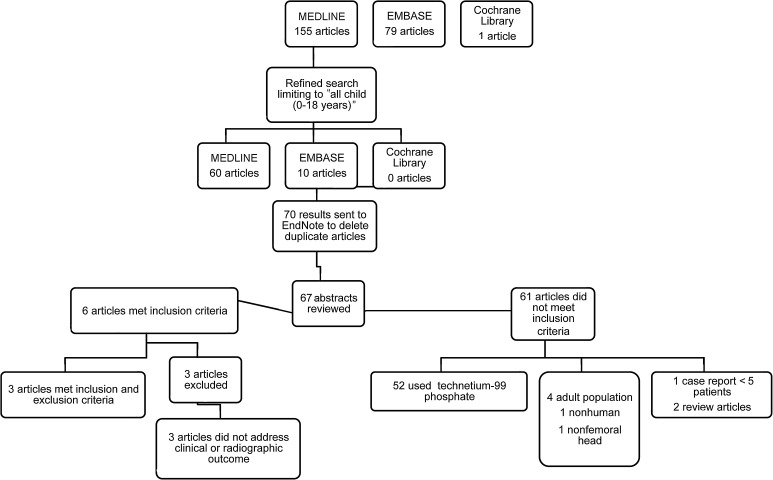 Methods: We searched the literature from 1966 to 2011 for clinical and experimental studies on BP therapy for juvenile femoral head osteonecrosis. Studies specifically addressing clinical and/or radiographic/histologic outcomes pertaining to pain and function and femoral head morphology were analyzed.