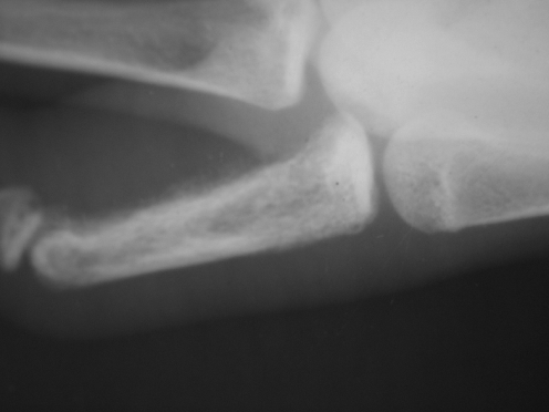Ewings sarcoma of the hand is relatively rare. Ewings sarcoma can present with minimal pain and swelling of the affected digit. The Erythrocyte sedimentation rate and C-reactive protein may be high. Radiologically, Ewings sarcoma can present with a plethora of features from permeative bone destruction to expansile lesions with or without periosteal reaction. Because of these features, this can be confused with Tuberculosis especially in a country like ours where Tuberculosis is endemic. This leads to starting of inappropriate treatment and delay in diagnosis. We report a case of an 18 year old boy who was initially diagnosed as Tuberculous dactylytis of the proximal phalanx of the little finger. He was started on anti-tuberculous treatment and did not respond to it. Subsequent investigation in our centre which also included an open biopsy, confirmed the diagnosis of Ewings sarcoma. He was treated with ray excision, and chemotherapy. This case is being presented for its rarity and also to emphasize the fact that an open biopsy in suspected cases would be appropriate to confirm the diagnosis. This would prevent delay in diagnosis of rare conditions like Ewings sarcoma.