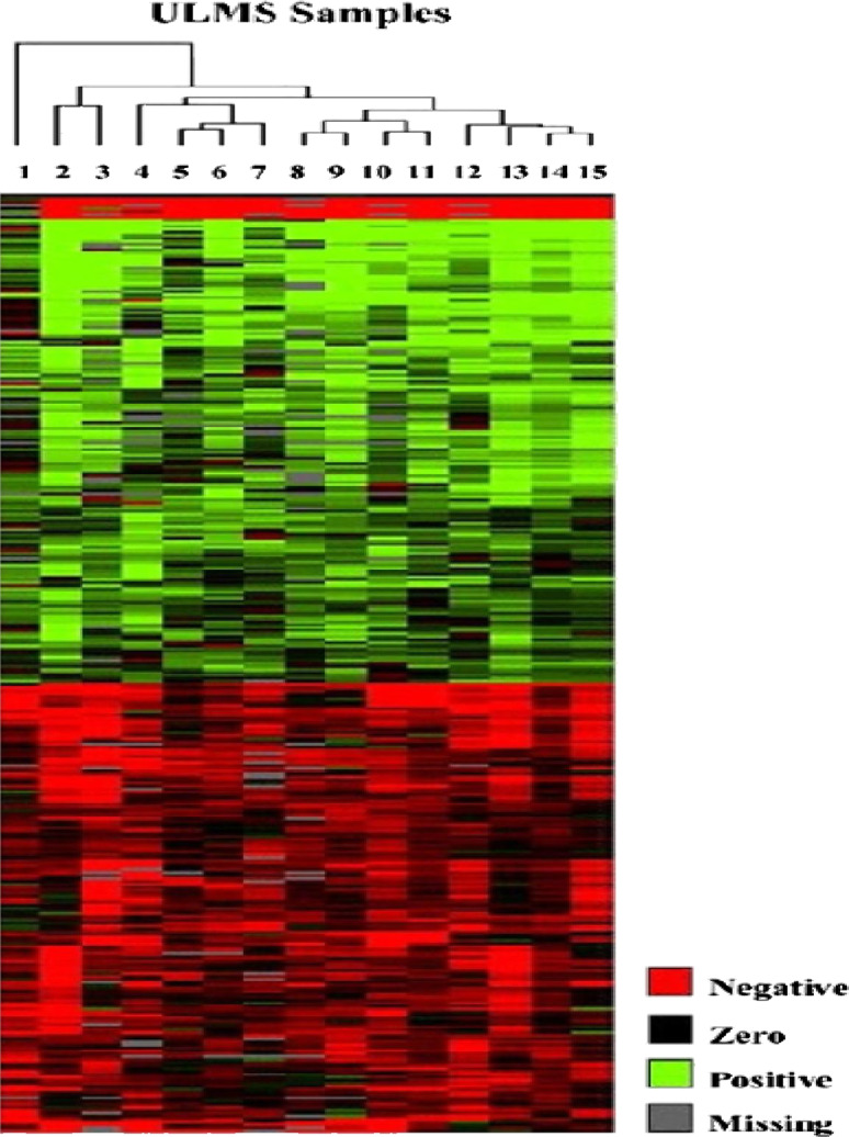 Methods: Genomic DNA copy number changes were analyzed in 15 cases of ULMS from St Mary's Hospital of the Catholic University of Korea. The paraffin-fixed tissue samples were micro-dissected under microscope, and DNA was extracted. Array-based CGH and genomic polymerase chain reaction were carried out with statistical analyses such as hierarchical clustering and Gene Ontology.