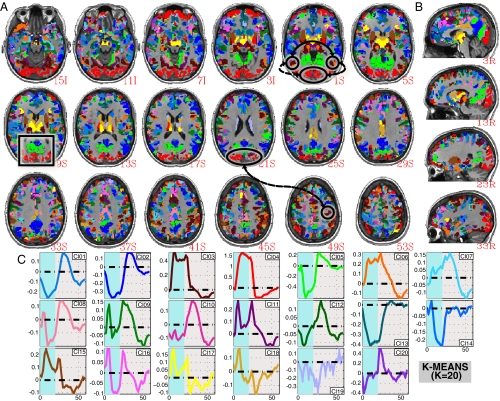 Whole-brain, time-locked activation with simple tasks revealed using massive averaging and model-free analysis