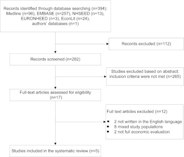 Methods: Clinical and economic electronic databases, reference lists and authors' databases were searched up to 13 January 2011. Two reviewers independently selected studies for inclusion, performed the risk of bias assessment and data extraction.