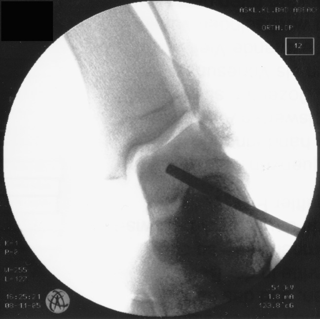 Fluoroscopy-guided retrograde core drilling and cancellous bone grafting in osteochondral defects of the talus