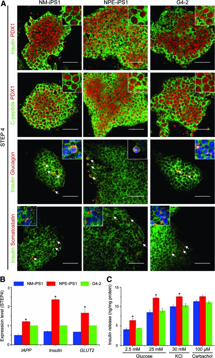 The nonobese diabetic (NOD) mouse is a classical animal model for autoimmune type 1 diabetes (T1D), closely mimicking features of human T1D. Thus, the NOD mouse presents an opportunity to test the effectiveness of induced pluripotent stem cells (iPSCs) as a therapeutic modality for T1D. Here, we demonstrate a proof of concept for cellular therapy using NOD mouse-derived iPSCs (NOD-iPSCs). We generated iPSCs from NOD mouse embryonic fibroblasts or NOD mouse pancreas-derived epithelial cells (NPEs), and applied directed differentiation protocols to differentiate the NOD-iPSCs toward functional pancreatic beta cells. Finally, we investigated whether the NPE-iPSC-derived insulin-producing cells could normalize hyperglycemia in transplanted diabetic mice. The NOD-iPSCs showed typical embryonic stem cell-like characteristics such as expression of markers for pluripotency, in vitro differentiation, teratoma formation, and generation of chimeric mice. We developed a method for stepwise differentiation of NOD-iPSCs into insulin-producing cells, and found that NPE-iPSCs differentiate more readily into insulin-producing cells. The differentiated NPE-iPSCs expressed diverse pancreatic beta cell markers and released insulin in response to glucose and KCl stimulation. Transplantation of the differentiated NPE-iPSCs into diabetic mice resulted in kidney engraftment. The engrafted cells responded to glucose by secreting insulin, thereby normalizing blood glucose levels. We propose that NOD-iPSCs will provide a useful tool for investigating genetic susceptibility to autoimmune diseases and generating a cellular interaction model of T1D, paving the way for the potential application of patient-derived iPSCs in autologous beta cell transplantation for treating diabetes.