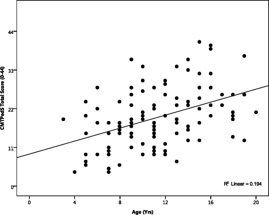 Interpretation: The CMTPedS is a well-tolerated outcome measure that can be completed in 25 minutes. It is a reliable, valid, and sensitive global measure of disability for children with CMT from the age of 3 years.