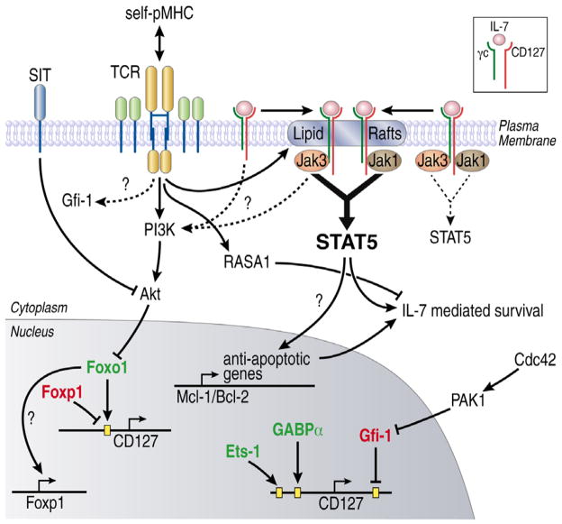IL-7 signaling and CD127 receptor regulation in the control of T cell homeostasis