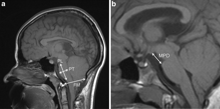 Conclusions: Morphometric measures may reliably quantify the morphological distortions of Chiari II malformation on MR images and provide additional tools to assess the severity of Chiari II malformation in clinical and research settings.