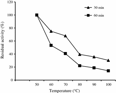 An alkalitolerant fungus, Aspergillus fumigatus strain MA28 produced significant amounts of cellulase-free xylanase when grown on a variety of agro-wastes. Wheat bran as the sole carbon source supported higher xylanase production (8,450 U/L) than xylan (7,500 U/L). Soybean meal was observed to be the best nitrogen source for xylanase production (9,000 U/L). Optimum medium pH for xylanase production was 8 (9,800 U/L), though, significant quantities of the enzyme was also produced at pH 7 (8,500 U/L), 9 (8,200 U/L) and 10 (4,600 U/L). The xylanase was purified by ammonium sulphate precipitation and carboxymethyl cellulose chromatography, and was found to have a molecular weight of 14.4 kDa with a V(max) of 980 μmol/min/mg of protein and a K(m) of approximately 4.9 mg/mL. The optimum temperature and pH for enzyme activity was 50 °C and pH 8, respectively. However, the enzyme also showed substantial residual activity at 60-70 °C (53-75%) and at alkaline pH 8-9 (56-88%).