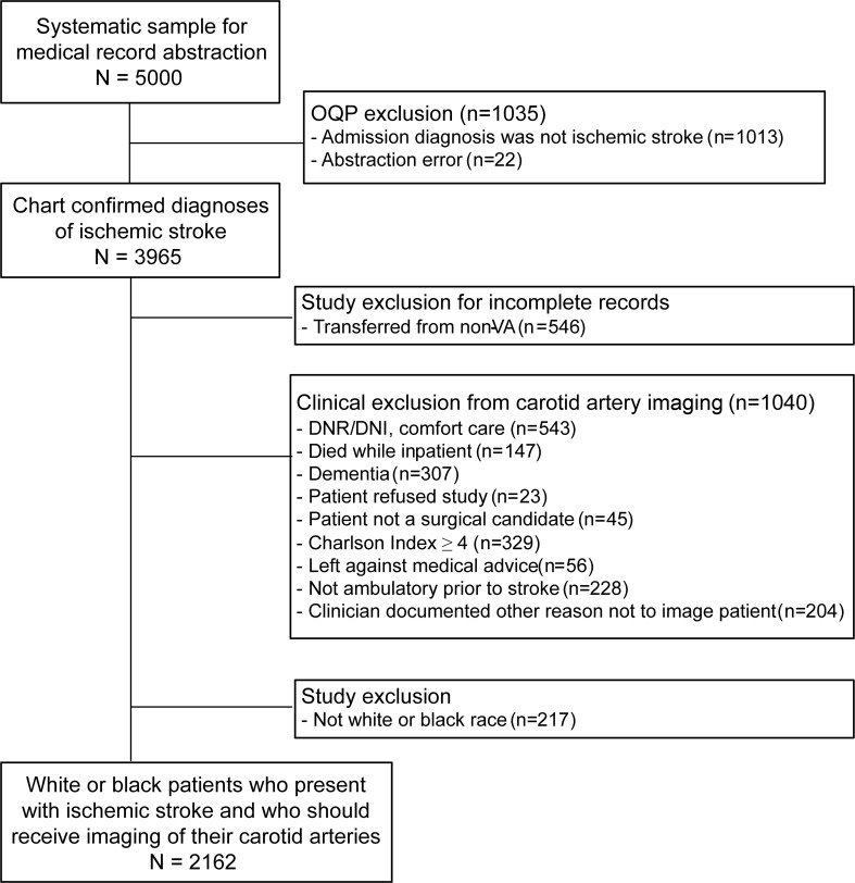 Conclusions: Underuse of carotid artery imaging occurred most often among patients hospitalized at minority-serving hospitals. Further work is required to explore why site of care is a mechanism for racial disparities in this clinically important diagnostic test.