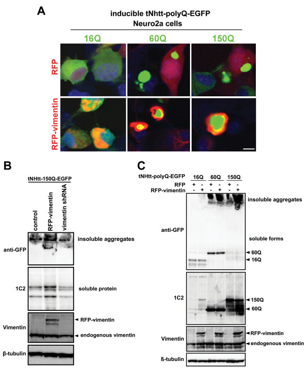Conclusions: Our results suggest that vimentin represents a novel and additional target for the therapy of polyQ diseases.
