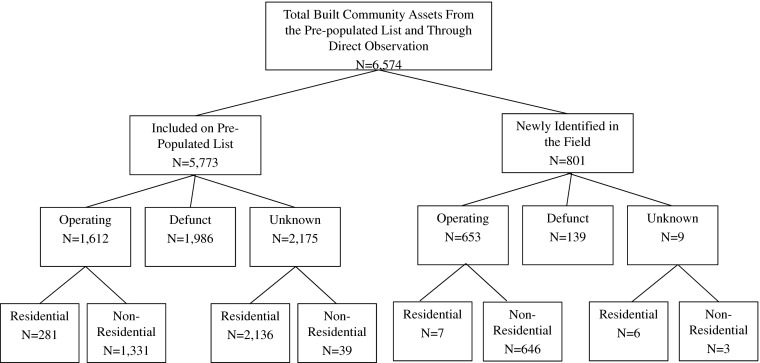 Secondary data sources are widely used to measure the built asset environment, although their validity for this purpose is not well-established. Using community-engaged research methodology, this study conducted a census of public-facing, built assets via direct observation and then tested the performance of these data against widely used secondary datasets. After engaging community organizations, a community education campaign was implemented. Using web-enabled cell phones and a web-based application prepopulated with the secondary data, census workers verified, modified, and/or added assets using street-level observation, supplementing data with web searches and telephone calls. Data were uploaded to http://www.SouthSideHealth.org . Using direct observation as the criterion standard, the sensitivity of secondary datasets was calculated. Of 5,773 assets on the prepopulated list, direct observation of public-facing assets verified 1,612 as operating; another 653 operating assets were newly identified. Sensitivity of the commercial list for nonresidential, operating assets was 61 %. Using the asset census as the criterion standard, secondary datasets were incomplete and inaccurate. Comprehensive, accurate built asset data are needed to advance urban health research, inform policy, and improve individuals' access to assets.