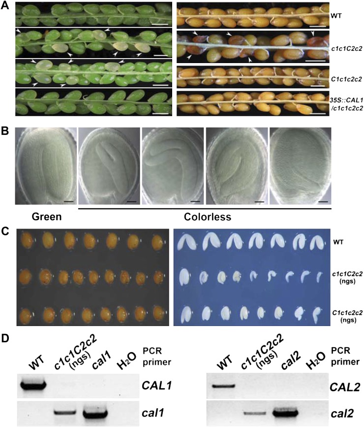 Complex I (NADH:ubiquinone oxidoreductase) is the entry point for electrons into the respiratory electron transport chain; therefore, it plays a central role in cellular energy metabolism. Complex I from different organisms has a similar basic structure. However, an extra structural module, referred to as the γ-carbonic anhydrase (γCA) subcomplex, is found in the mitochondrial complex I of photoautotrophic eukaryotes, such as green alga and plants, but not in that of the heterotrophic eukaryotes, such as fungi and mammals. It has been proposed that the γCA subcomplex is required for the light-dependent life style of photoautotrophic eukaryotes, but this hypothesis has not been successfully tested. We report here a genetic study of the genes γCAL1 and γCAL2 that encode two subunits of the γCA subcomplex of mitochondrial complex I. We found that mutations of γCAL1 and γCAL2 in Arabidopsis (Arabidopsis thaliana) result in defective embryogenesis and nongerminating seeds, demonstrating the functional significance of the γCA subcomplex of mitochondrial complex I in plant development. Surprisingly, we also found that reduced expression of γCAL1 and γCAL2 genes altered photomorphogenic development. The γcal1 mutant plant expressing the RNA interference construct of the γCAL2 gene showed a partial constitutive photomorphogenic phenotype in young seedlings and a reduced photoperiodic sensitivity in adult plants. The involvement of the γCA subcomplex of mitochondrial complex I in plant photomorphogenesis and the possible evolutionary significance of this plant-specific mitochondrial protein complex are discussed.