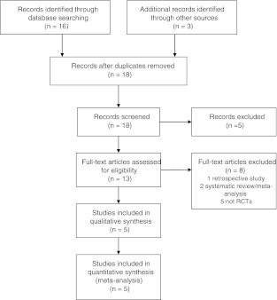 Methods: An exhaustive electronic search was performed using MEDLINE and EMBASE databases. Only RCTs comparing follicular flushing to aspiration only during ART, were included. We included 5 trials, with a total of 482 patients randomized, with median ages ranging from 30.5 to 37.1.