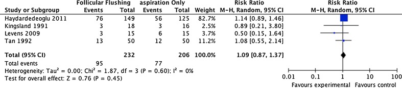 Conclusions: The results from this systematic review and meta-analysis suggest that there is no advantage to use of routine follicular flushing during OR in an unselected group of patients.