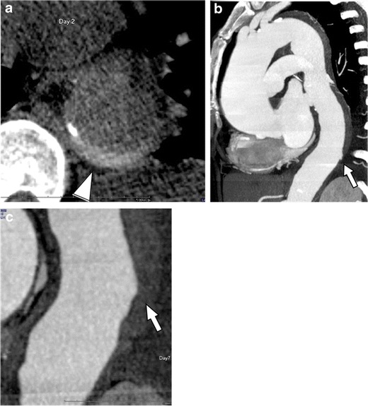 - Vilacosta I, Aragoncillo P, Canadas V, San Roman JA, Ferreiros J, Rodriguez E. Acute aortic syndrome: a new look at an old conundrum. Heart. 2009;95:1130–1139. - PubMed