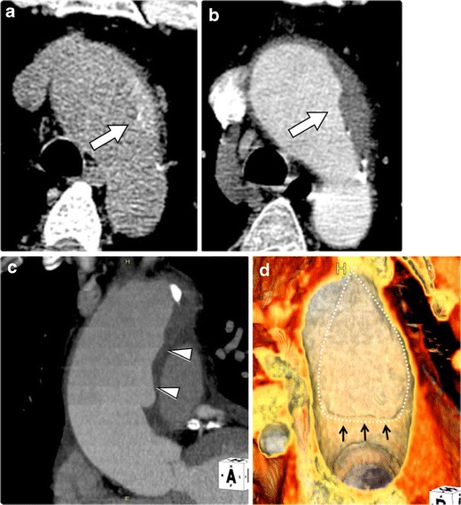 Conclusion: In this pictorial review, we describe the discriminating and typical imaging features as revealed by modern ECG-gated MDCT angiography. In addition to the discriminating features, recognition of the overlapping and transitional features in AAS will allow a more comprehensive understanding of their underlying pathophysiologic conditions and their natural history, and may improve therapeutic management.