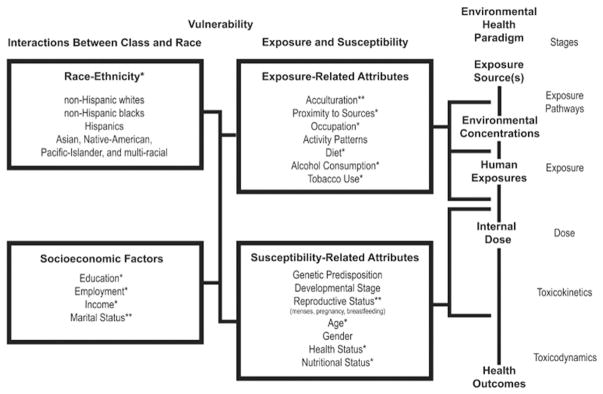 Objectives: To determine the percentage of women aged 16-49 of diverse races and ethnicities whose body burdens for all three xenobiotics were at or above the median; to identify mixed exposures; and to describe those women disproportionately burdened by two or more of these chemicals based on susceptibility- and exposure-related attributes, socioeconomic factors and race-ethnicity.