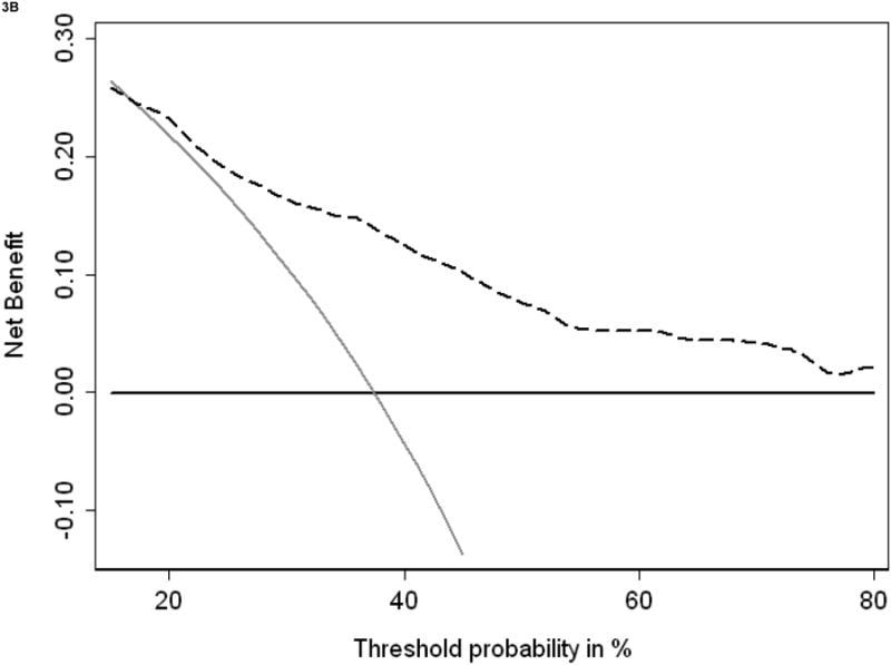 Outcome measurements and statistical analysis: The development cohort was used to select predictive variables from a large group of candidate predictors. The discrimination, calibration, and decision curves were corrected for overfit using 10-fold crossvalidation that included stepwise variable selection.