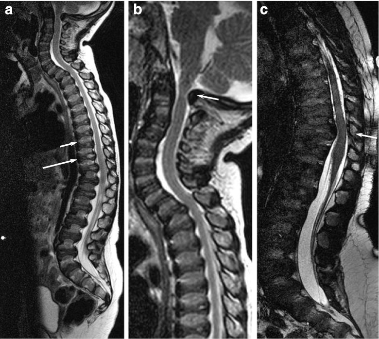 Mucopolysaccharidosis IVA (MPS IVA), also known as Morquio-Brailsford or Morquio A syndrome, is a lysosomal storage disorder caused by a deficiency of the enzyme N-acetyl-galactosamine-6-sulphate sulphatase (GALNS). MPS IVA is multisystemic but manifests primarily as a progressive skeletal dysplasia. Spinal involvement is a major cause of morbidity and mortality in MPS IVA. Early diagnosis and timely treatment of problems involving the spine are critical in preventing or arresting neurological deterioration and loss of function. This review details the spinal manifestations of MPS IVA and describes the tools used to diagnose and monitor spinal involvement. The relative utility of radiography, computed tomography (CT) and magnetic resonance imaging (MRI) for the evaluation of cervical spine instability, stenosis, and cord compression is discussed. Surgical interventions, anaesthetic considerations, and the use of neurophysiological monitoring during procedures performed under general anaesthesia are reviewed. Recommendations for regular radiological imaging and neurologic assessments are presented, and the need for a more standardized approach for evaluating and managing spinal involvement in MPS IVA is addressed.