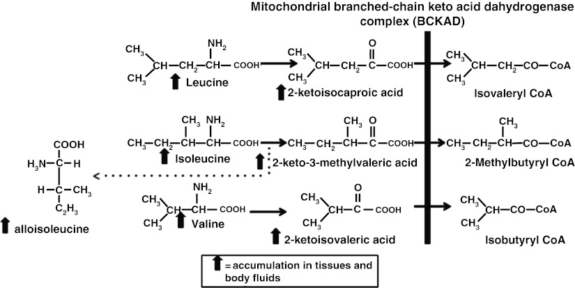 - Chuang DT, Shih VE (2001) Maple syrup urine disease (branched-chain ketoaciduria). In: Scriver CR Beaudet AL, Sly WS, Valle D (eds), Childs B, Kinzler KW, Vogelstein B (assoc eds). The Metabolic and Molecular Basis of Inerited Disease, 8th edn. Mc Graw-Hill, New York, pp 1971–2006