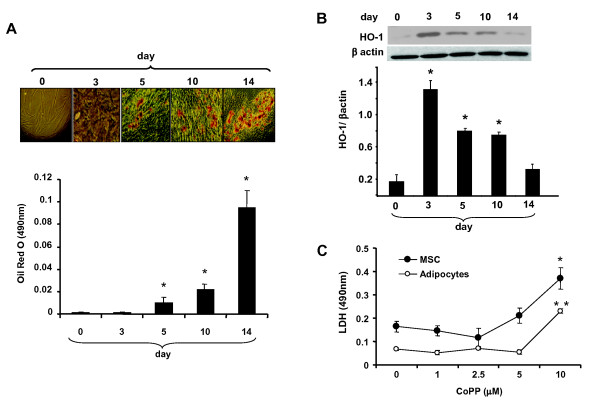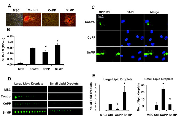 Methods: To verify the role of HO-1 in generating small healthy adipocytes, cobalt protoporphyrin (CoPP), inducer of HO-1, was used during adipocyte differentiation. Lipid accumulation was measured by Oil red O staining and lipid droplet size was measured by BODIPY staining.