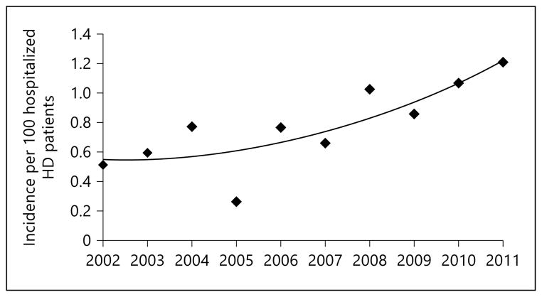 Methods: This matched case-control study included 62 adult maintenance hemodialysis (HD) patients with biopsy-confirmed CUA diagnosed between the years 2002 and 2011 (cases). All cases were hospitalized at the time of diagnosis. Controls (n = 124) were hospitalized maintenance HD patients without CUA (matched to cases by gender and timing of hospitalization). Univariate and multivariable logistic regression models were applied to compute odds ratio (OR) and 95% confidence intervals (CI) for CUA in statin users, and also to examine previously described associations.